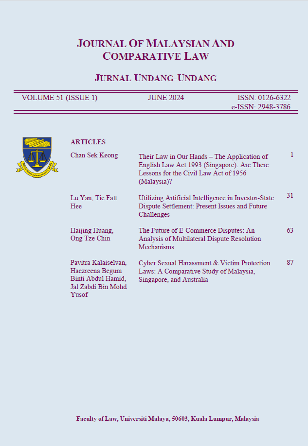 This issue of the JMCL features four articles. In the first article, entitled “Their Law in Our Hands – The Application of English Law Act 1993 (Singapore): Are There Lessons for the Civil Law Act of 1956 (Malaysia)?”, the author explores how English law, once imposed on Penang, Malacca, and Singapore during British colonisation, evolved into the foundation of local legal systems. Justice Keong is convinced that though England lost its territorial empire, it retained a legal empire through the enduring influence of English common law, especially in global finance and trade. In territories lacking unified legal frameworks, English law became essential, and over time, local courts gradually took ownership of it. This culminated in Singapore’s 1994 legal reforms, when it fully broke from Privy Council precedent, signalling the maturation of an independent legal system shaped by national needs and values.